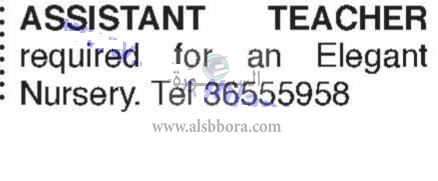 تعلن كبرى المدارس بالمملكة البحرينية عن حاجتها الى معلمين مساعدين، وعلى الراغبين فى التقدم الاتصال بالرقم المنشور فى الاعلان التالى: