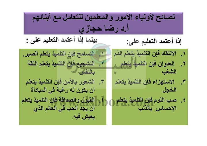قال الدكتور رضا حجازي رئيس قطاع التعليم بوزارة التربية والتعليم المصرية ، عزيزى ولى الأمر وأخى المعلم ان تربية الابناء والتلاميذ من اقدس المهام