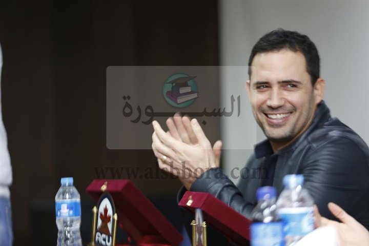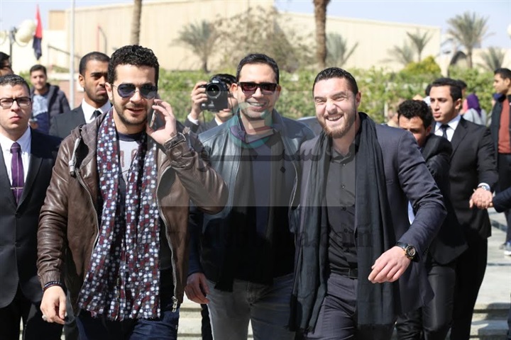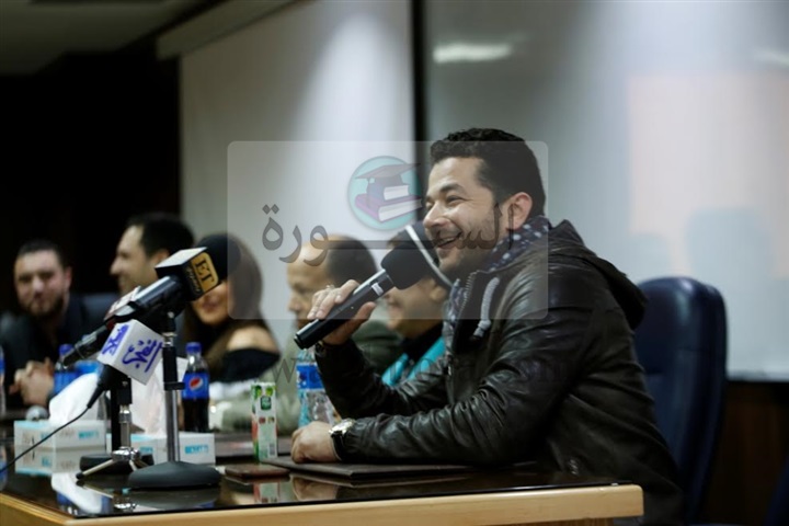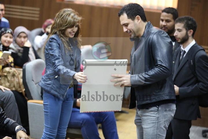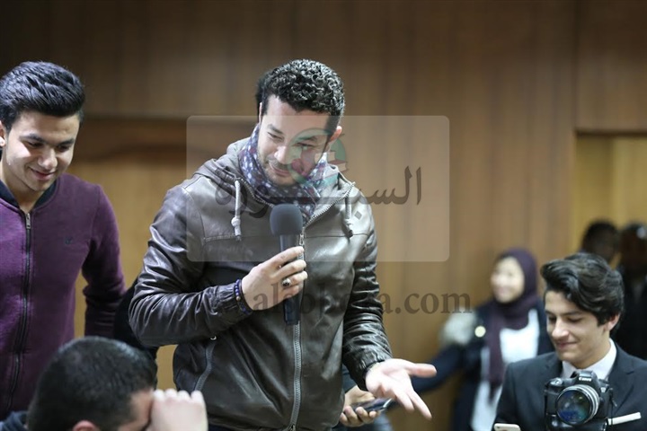 وقام طلاب الجامعة بتقديم هدايا تذكارية لنجوم المسلسل، تعبيرًا عن حبهم لهم، استتبعها مناقشة مفتوحة مع الطلاب حول "الخروج" ومشوار النجوم الفنى بشكل عام.