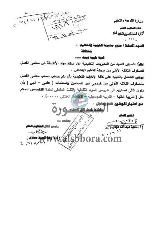 ننشر القرار الخاص بوزارة التربية والتعليم والذي يتضمن النصاب الجديد لمعلمي الفصل الصفوف الثلاثة الأولي .