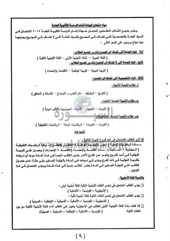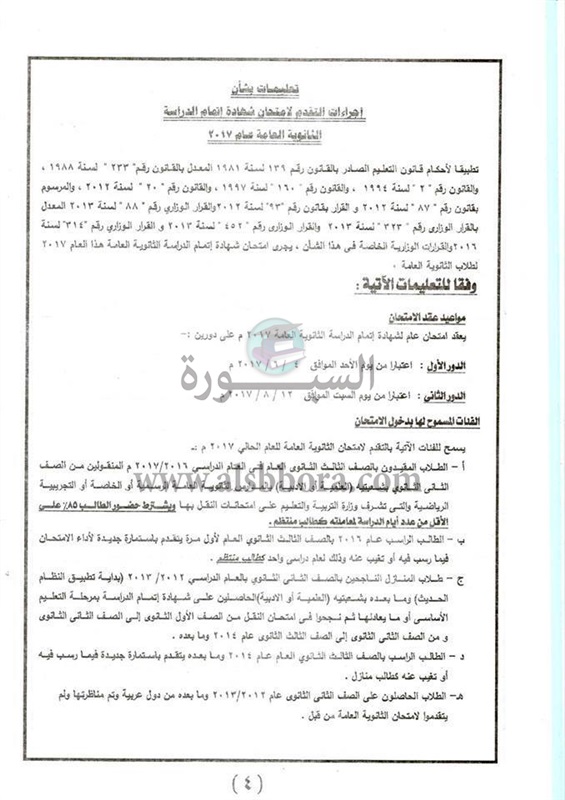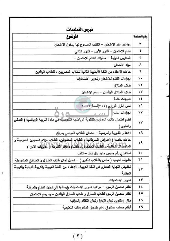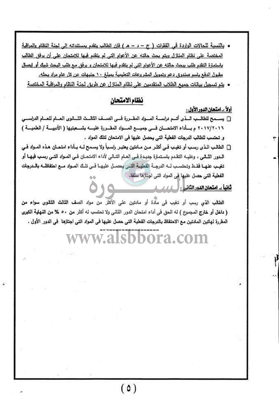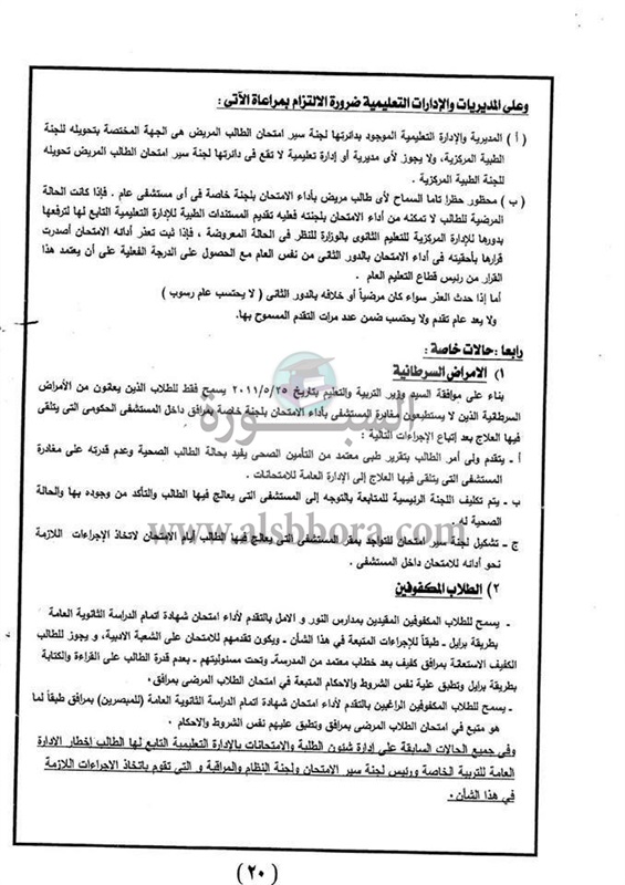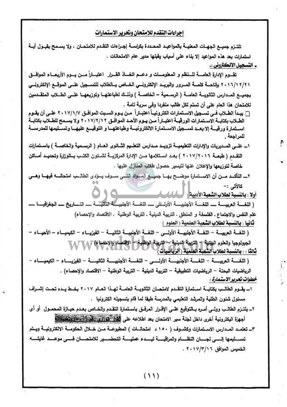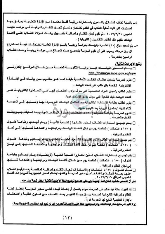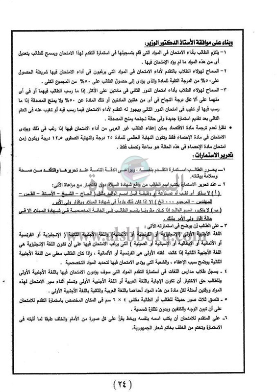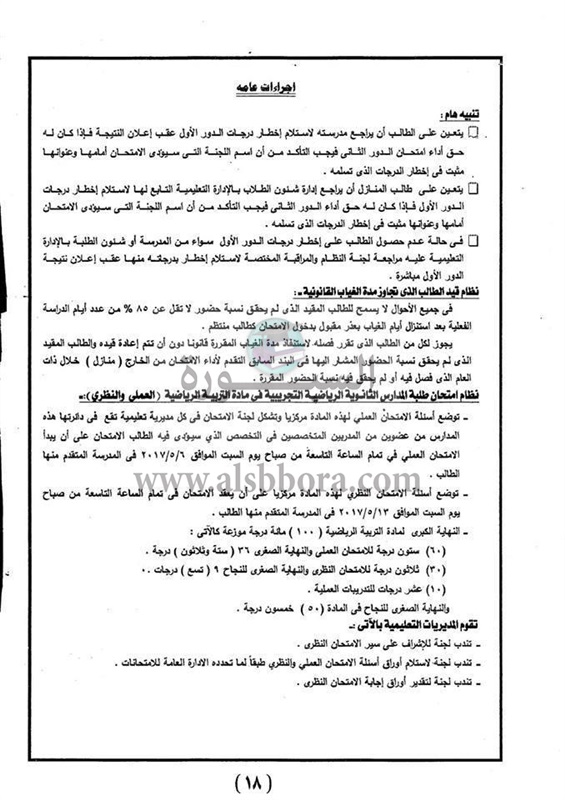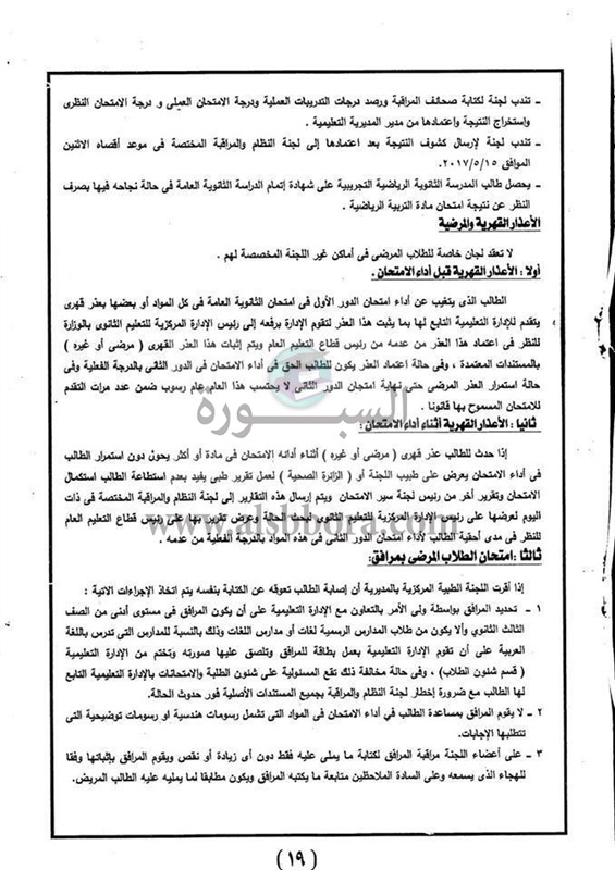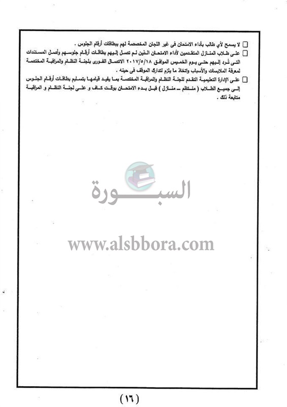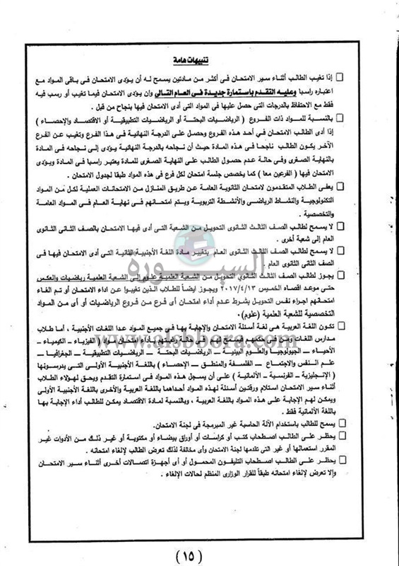 ينشر موقع السبورة التعليمات التى أصدرتها وزارة التربية والتعليم بشأن امتحانات الثانوية العامة للعام الدراسى 2017/2016.
