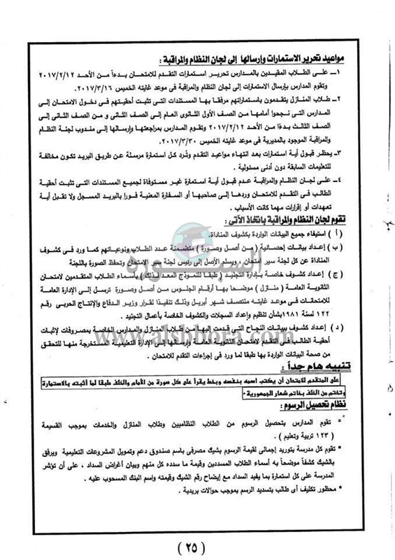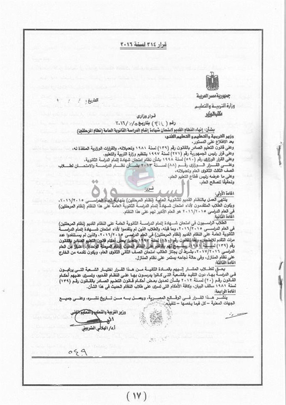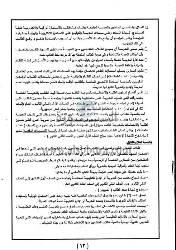 عاجل وبالمستندات| تعرف على التعليمات التى أصدرتها وزارة التربية والتعليم بشأن امتحانات الثانوية العامة 2017