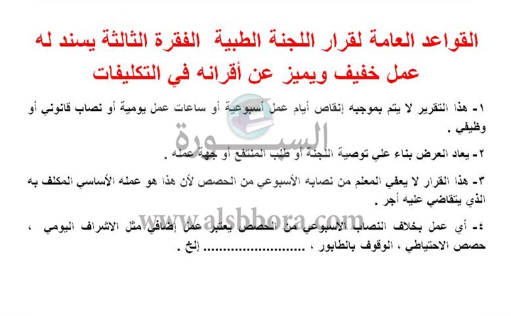 ينشر موقع السبورة الاجابة على سؤال ورد الى الصفحة الرسمية للموقع على "فيسبوك" بشأن الضوابط التى تحكم العمل الخفيف للمعلم وتقليل نصابه من الحصص أو عدمه.