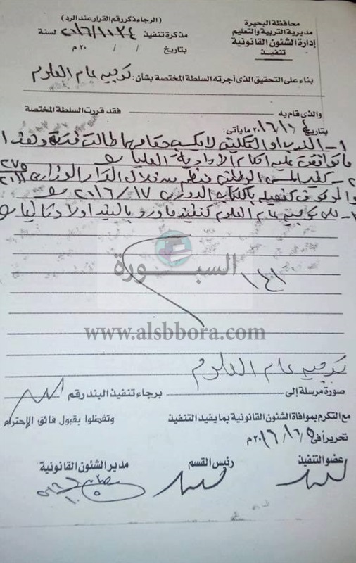 ينشر موقع السبورة التحقيق التى أجرته مديرية التربية والتعليم بمحافظة البحيرة بشأن توجيه عام العلوم بإن الندب أو التكليف لا يكسب حقا مهما طالت مدته وهذا ما توافقت علين احكام الادارية العليا.