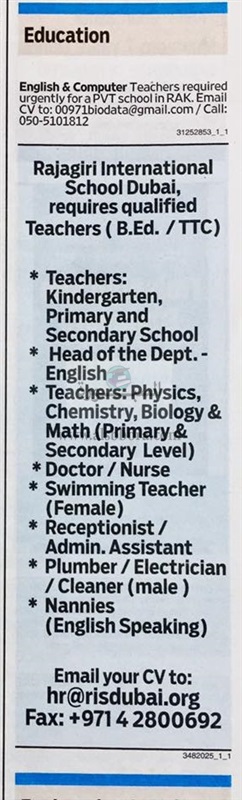 تعلن مدسة خاصة في إمارة دبي بدولة الامارات العربية المتحدة عن حاجتها للتعاقد مع معلمين وذلك في المواد التالية: