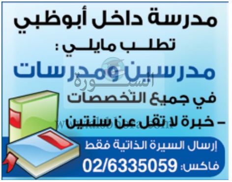 تعلن مدرسة خاصة في إمارة أبوظبي بدولة الإمارات عن وظائف جديدة للمعلمين والمعلمات في جميع المواد وفقا لنص الإعلان التالي:
