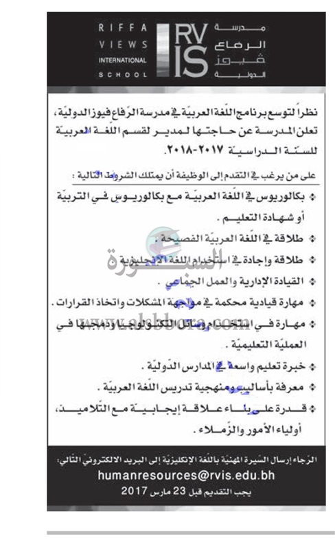 تعلن مدرسة خاصة في البحرين عن حاجتها للتعاقد مع معلمين جدد وذلك وفقا لنص الإعلان التالي: