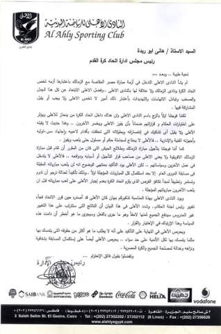 ننشر بيان النادى الأهلى لاتحاد الكرة.. ومرتضى منصور يرد