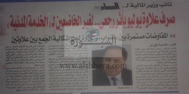 وأضاف فى تصريحات لنائب وزير المالية لشئون الحزانة، صحفية لجريدة المساء، صرف علاوة يوليو بأثر رجعى للمعلمين وأعضاء هيئة التدريس.