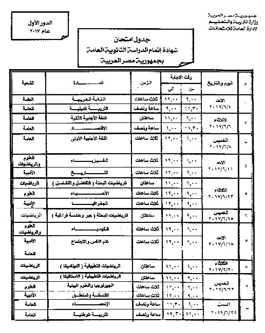 ننشر..جدول الثانوية العامة بعد التعديل الجديد والذى ينتهى 2017/6/24