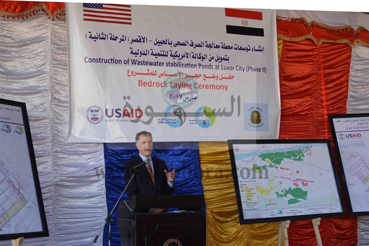 كما شارك السفير الأمريكي، في حفل وضع حجر الأساس لمشروع إنشاء توسعات محطة معالجة الصرف الصحي بالحبيل، الممول من الوكالة الأمريكية للتنمية الدولية، وذلك بحضور محافظ الأقصر محمد بدر، ورئيس برنامج المعونة الأمريكية في مصر شيري كارولين، ورئيس الشركة القابضة لمياه الشرب والصرف الصحي المهندس ممدوح رسلان، ورئيس شركة مياه الشرب والصرف الصحي في الأقصر اللواء محمد يحيى.