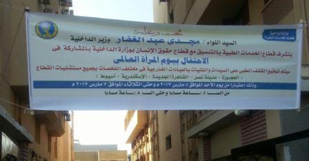 قامت مستشفى الشرطة بأسيوط ولمدة يومين وبمناسبة الاحتفال باليوم العالمي للمرأة بالتنسيق مع قطاع حقوق الإنسان بوزارة الداخلية بتوقيع الكشف الطبي على السيدات والفتيات بالعيادات الخارجية في مختلف التخصصات وذلك من يوم 5 مارس لعام 2017 م حتى 7 مارس 2017 م من الساعة 5 مساءا حتى الساعة 8 مساءا
