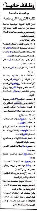 تعلن جامعة طنطا عن وظائف جديدة لأعضاء هيئة التدريس وذلك وفقا لما نشر في نص الإعلان التالي: