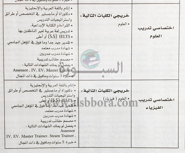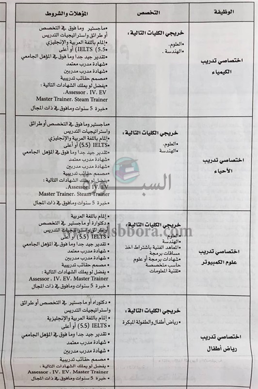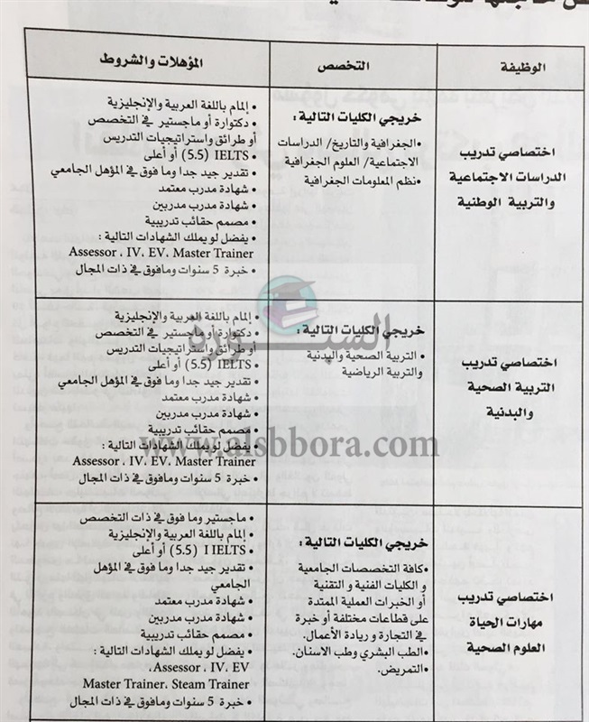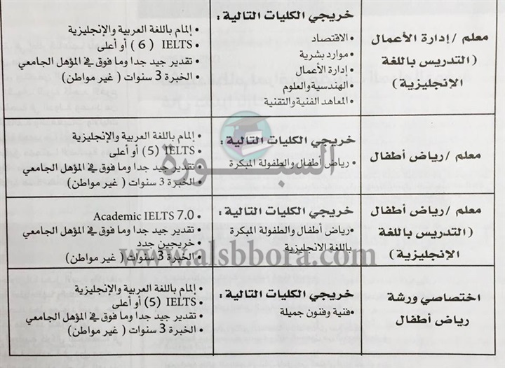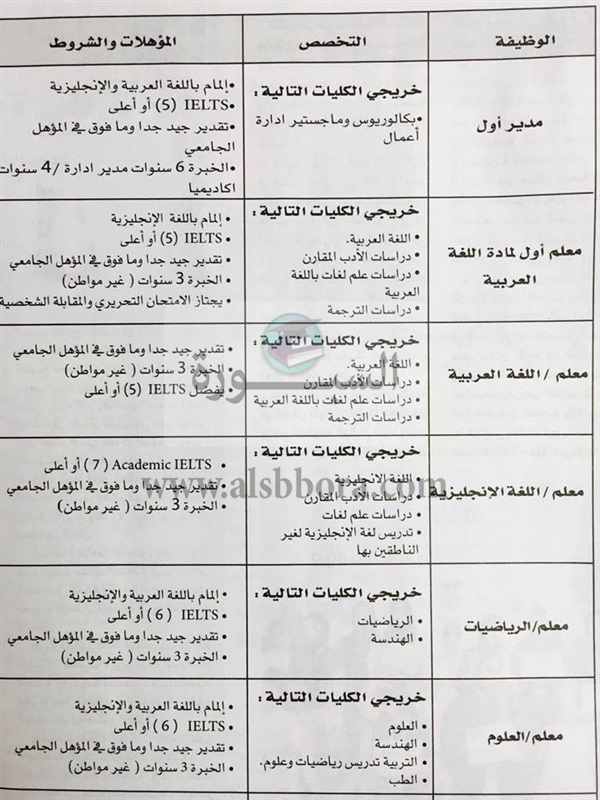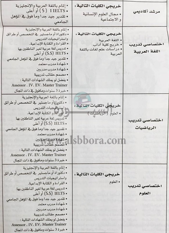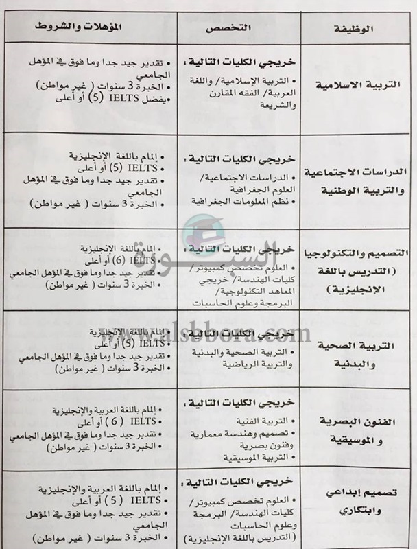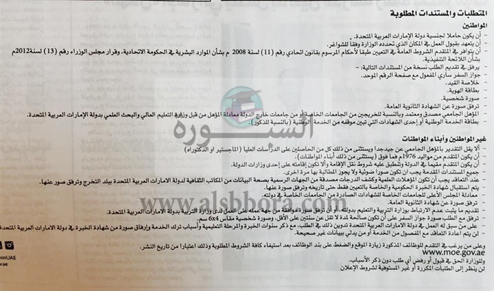 تنشر "السبورة" مسابقة وزارة التربية والتعليم الإماراتية لتعيين معلمين ومعلمات جدد وذلك في المواد التالية: