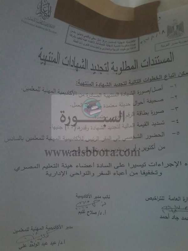 ينشر موقع "السبورة"، المستندات المطلوبة لتجديد الشهادة المنتهية: