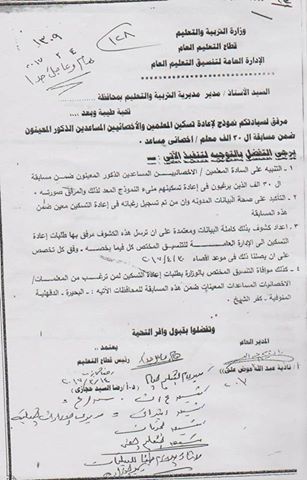 ننشر.. نموذج وفاكس عودة جميع المعلمين المغتربين لمحافظاتهم..ليوم 30 ابرريل 2017