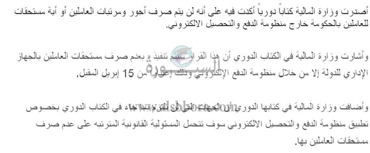 تنشر "السبورة" قرار وزارة المالية الجديد الخاص بأجور ومرتبات العاملين بالدولة والذي من المقرر أن يبدأ تنفيذه 15 إبريل المقبل