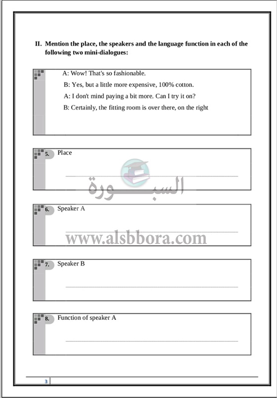 وأضاف مدير عام تنمية اللغة الانجليزية وان يجيب عن Function of speaker B في السؤال الثاني، فسوف يتم وضع ذلك محددا في صيغة السؤال في ورقة الاسئلة لتكون اكثر تحديدا.