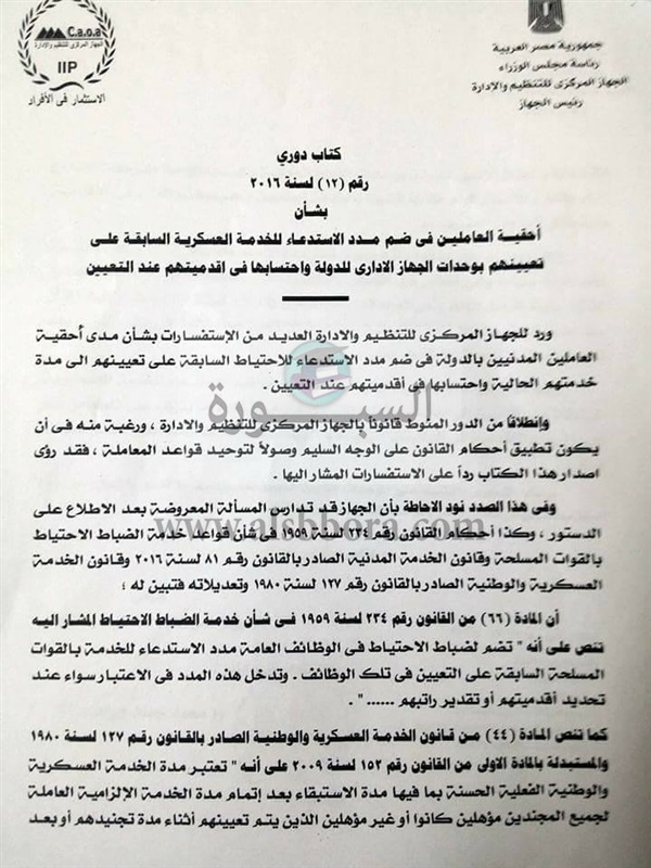 بالمستندات| ضم مدة الخدمة العسكرية والخدمة العامة واحتساب هذه المدة مدة بينية تدخل فى حساب المدد اللازمة للترقية