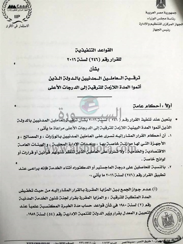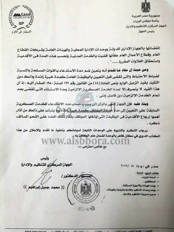 تنشر "السبورة" القرار الوزاري الخاص بضم مدة الخدمة العسكرية والخدمة العامة واحتساب هذه المدة مدة بينية تدخل فى حساب المدد اللازمة للترقية