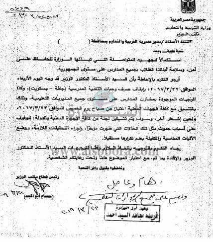 تنشر "السبورة" الفاكس الرسمى من وزارة التربية والتعليم بوقف صرف وجبات التغذية المدرسية «جافة – بسكويت» وكذلك الوجبات الموجودة بمخازن المدارس، على مستوى جميع المديريات التعليمية.