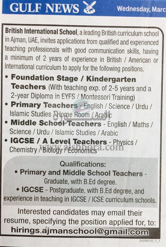 تعلن مدرسة دولية في الإمارات عن وظائف جديدة للمعلمين والمعلمات في جمع المراحل التعليمية وذلك في المواد الواردة في نص الإعلان التالي:-