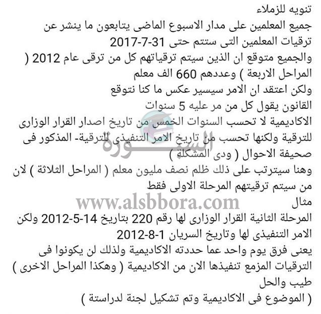 نشر نشطاء التعليم على موقع التواصل الاجتماعى أن جميع المعلمين على مدار الأسبوع الماضى يتابعون ما ينشر عن ترقيات المعلمين التى ستتم ترقياتهم كل من ترقى عام 2012 "المراحل الأربعة" وعددهم 660 الف معلم.