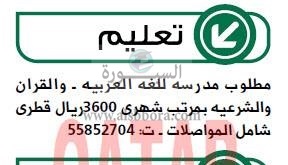 تعلن مدرسة خاصة في قطر عن حاجتها للتعاقد مع معلمين ومعلمات وذلك في المواد الواردة في نص الإعلان التالي: