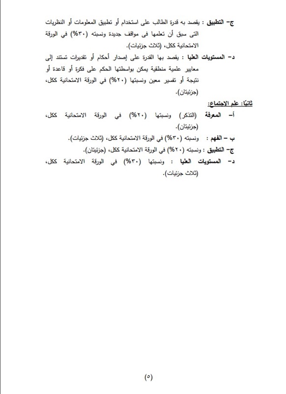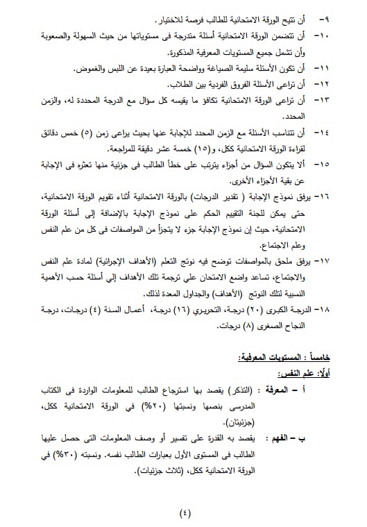 وتحدد هذه المواصفات كيفية وضع امتحان العام الدراسي الجاري، وتوزيع الدرجات.