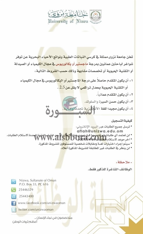 تعلن جامعة في سلطنة عمان عن حاجتها للتعاقد مع أعضاء هيئة التدريس جدد وذلك وفقا لنص الإعلان التالي: