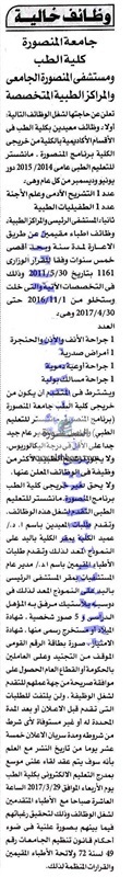 أعلنت جامعة المنصورة عن حاجتها للتعاقد مع أعضاء هيئة التدريس "من حملة الماجستير والدكتوراه" .