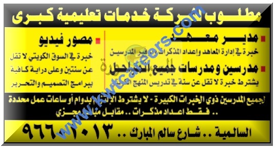 تعلن مدرسة خاصة في الكويت عن وظائف جديدة للمدرسين والمدرسات لجميع الراحل