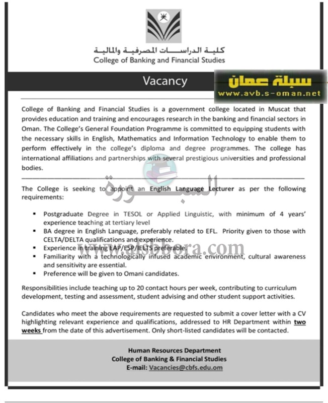 تعلن جامعة في سلطنة عمان عن حاجتها للتعاقد مع أعضاء هيئة تدريس جدد من حملة الماجستير والدكتوراه وذلك وفقا لنص الإعلان التالي: