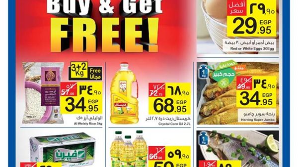 وجاءت أسعار زيت كريستال من 72 جنيها الى 68 جنيها، وصلصة الطماطم من 21 جنيها الى 12.95 قرشا، والأرز سعر الكيلو بـ 6 جنيهات.