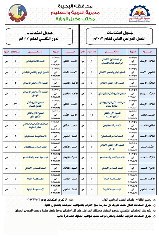 تعليم البحيرة تعلن عن الجدول النهائى لامتحانات نهاية العام