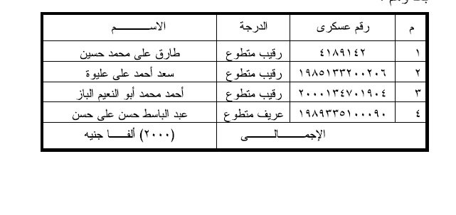 وتضمنت المادة الثانية المنشورة في القرار، يمنح معاش استثنائى مقداره خمسمائة جنيه للمستحقين عن ضباط الصف المتطوعين والمتوفين بعد إنهاء خدمتهم، بغير سبب الخدمة المذكورين بعد وهم: