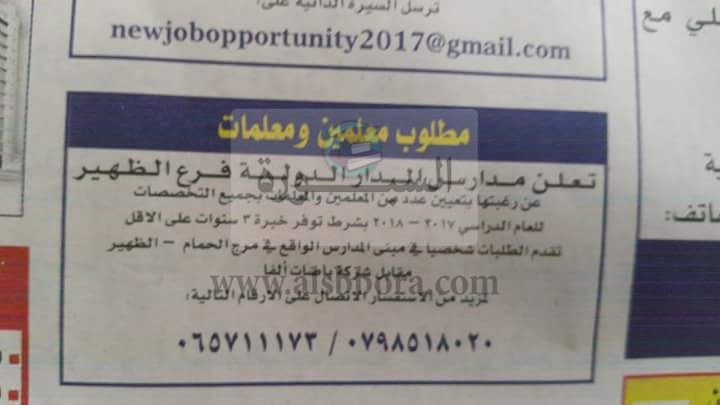 مدارس المدار الدولية تعلن عن وظائف جديدة للمعلمين والمعلمات في جميع التخصصات.. ننشر نص الإعلان