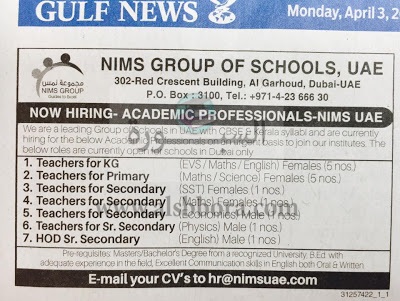 تعلن مدارس "نمس" الإماراتية عن حاجتها للتعاقد مع معلمين ومعلمات في جميع المراحل التعليمية والتخصصات التالية: