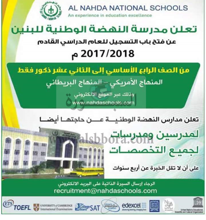 تعلن مدارس النهضة الإماراتية عن وظائف جديدة للمعلمين والمعلمات في جميع المواد وذلك وفقا لنص الإعلان التالي:-