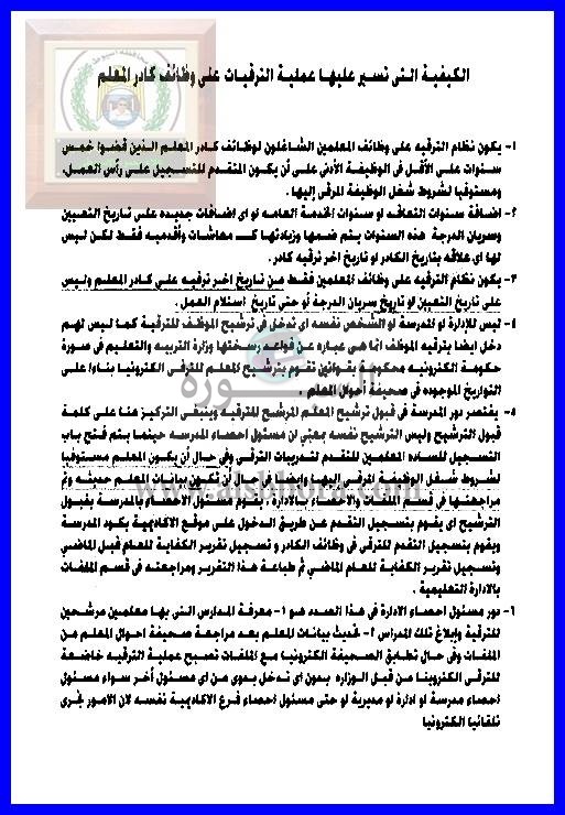 بالمستندات| تعرف علي ضوابط الترقيات علي وظائف المعلم بوزارة التربية والتعليم