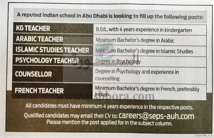 تعلن مدرسة خاصة في دولة الامارات عن وظائف جديدة للمعلمين والمعلمات وذلك وفقا لنص الإعلان:-