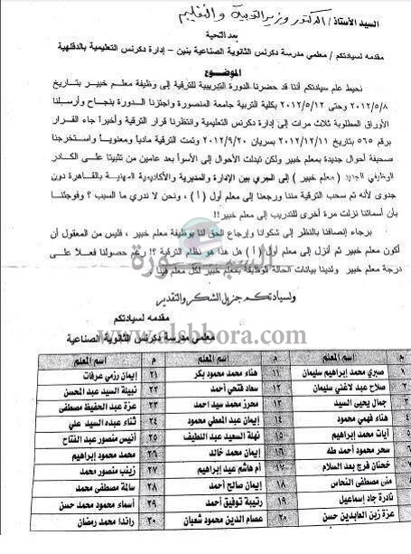 نداء من معلمين سلبة ترقيتهم من معلم خبير الى معلم أول "أ" الى وزير التربية والتعليم.. نننشر نص الشكوى