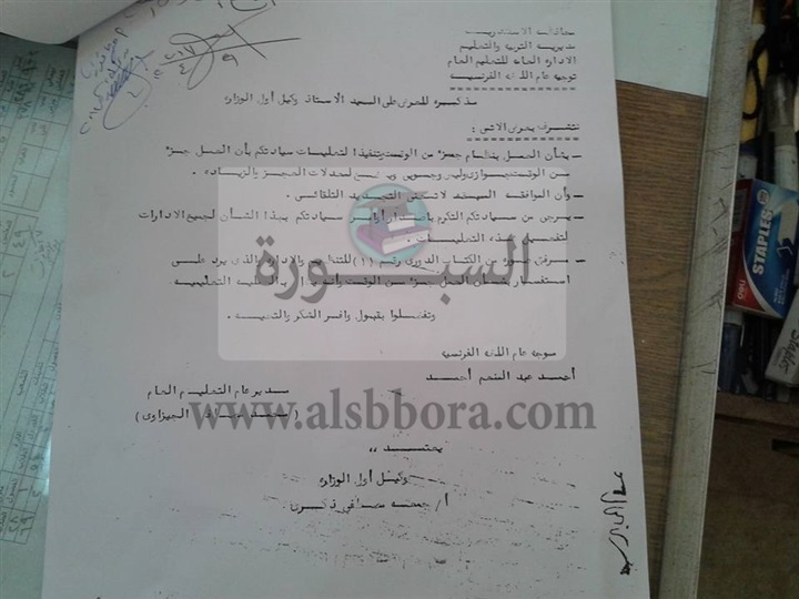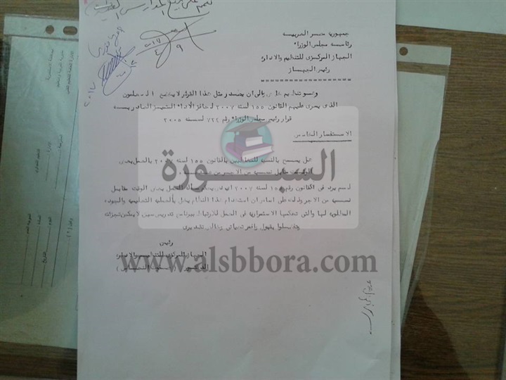 ارسلت وزارة التربية والتعليم، اليوم الاربعاء، الموافق12ابريل2017، الى المديريات، القرار الصادر من التنظيم والادارة، وهذه هى المرة الثانية التى ترسله الوزارة الى المديريات لتفعيله وكانت المرة الاولى فى عقب صدور هذا القرار فى سنة2007.