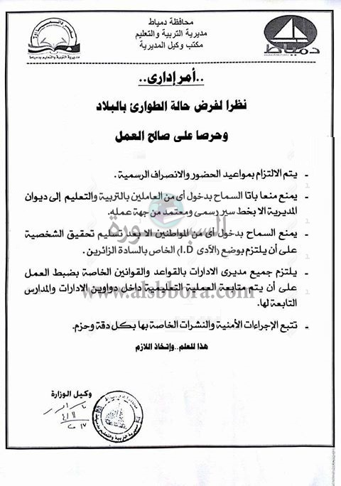 أصدر وزارة التربية والتعليم أمر إداري جديد للمعلمين يشمل مواعيد الحضور والانصراف وضوابط العمل بالمدارس والإدارات التعليمية