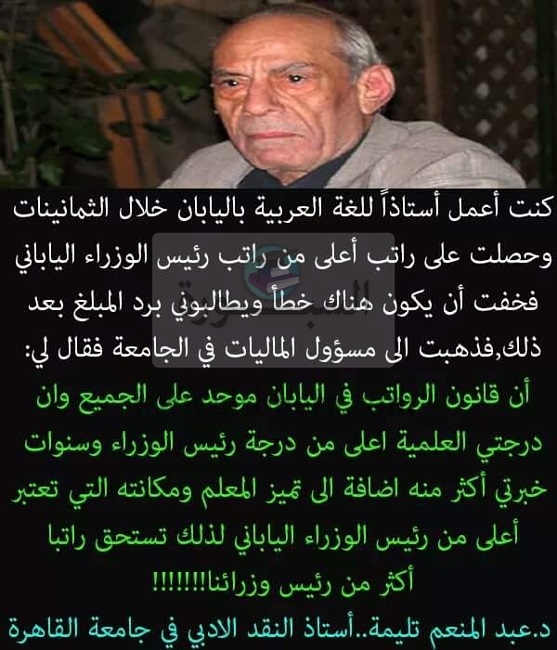 راتب استاذ الجامعة في اليابان أعلي من رئيس الحكومة ..وفي مصر اقل من الخفير النظامي