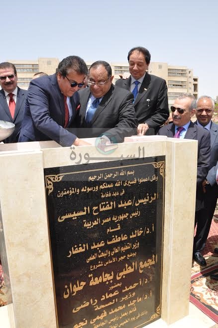 وزير التعليم العالي ورئيس جامعة حلوان يضعان حجر أساس المجمع الطبي لكلية الطب