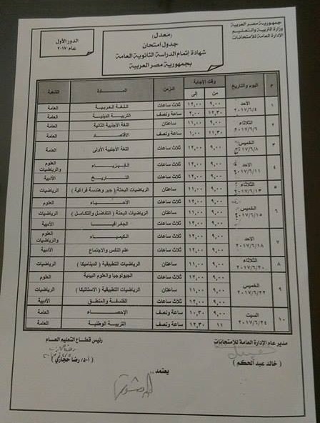 أكد الدكتور رضا حجازى، رئيس قطاع التعليم العام، ورئيس عام امتحانات الثانوية العامة بوزارة التربية والتعليم، أن هناك تعديلات على جدول امتحانات الثانوية العامة بشأن توقيت دخول اللجان.