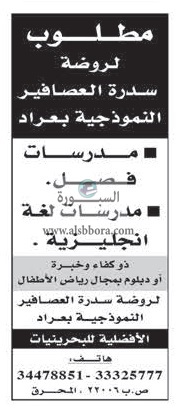 تعلن مدرسة خاصة في البحرين عن حاجتها للتعاقد مع معلمين ومعلمات جدد وذلك وفقا لنص الإعلان التالي: