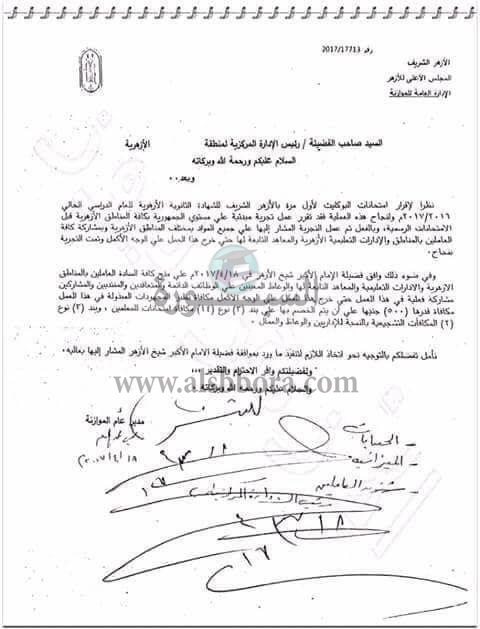 بالمستندات| الأزهر : منح العاملين 500 جنية لجهودهم فى امتحانات التجريب فى "بوكليت الثانوية الأزهرية".. ولا عزاء للتربية والتعليم