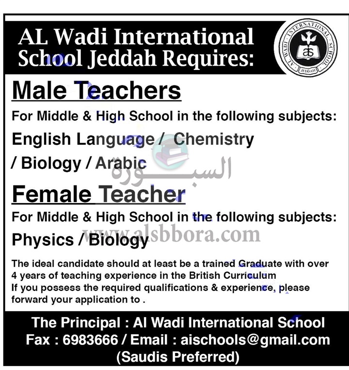تعلن عدد من المدارس الخاصة في المملكة العربية السعودية عن وظائف جديدة للمعلمين والمعلمات وذلك وفقا لنص الإعلان التالي:-
